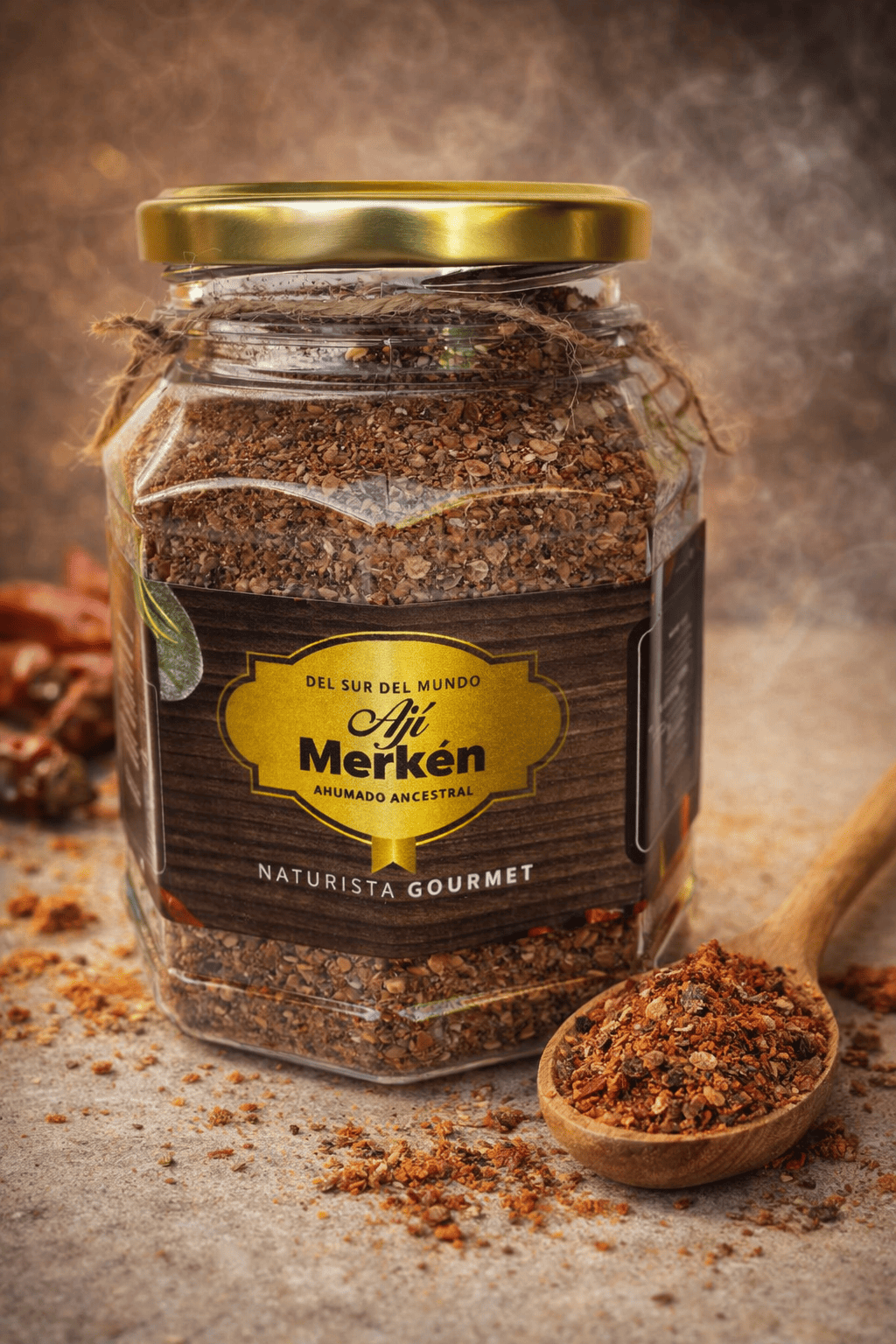 Ají cacho cabra, ahumado con chip madera roble americano, sal de mar Cahuil, semillas de cilantro y de pimienta negra.